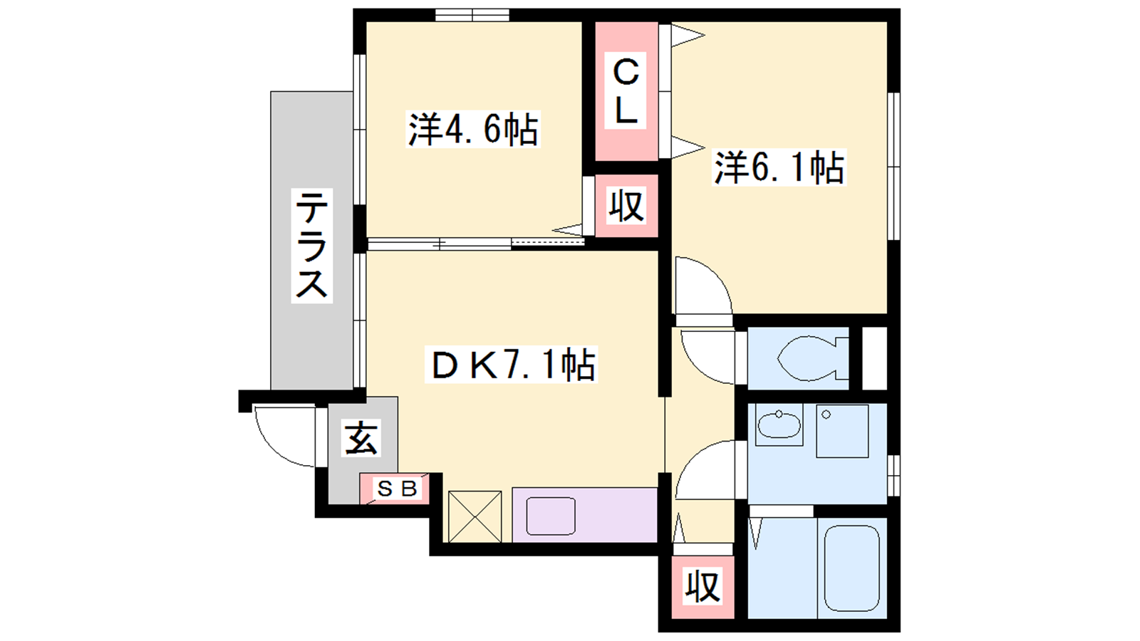 - DK7.1帖、洋室4.6帖、洋室6.1帖