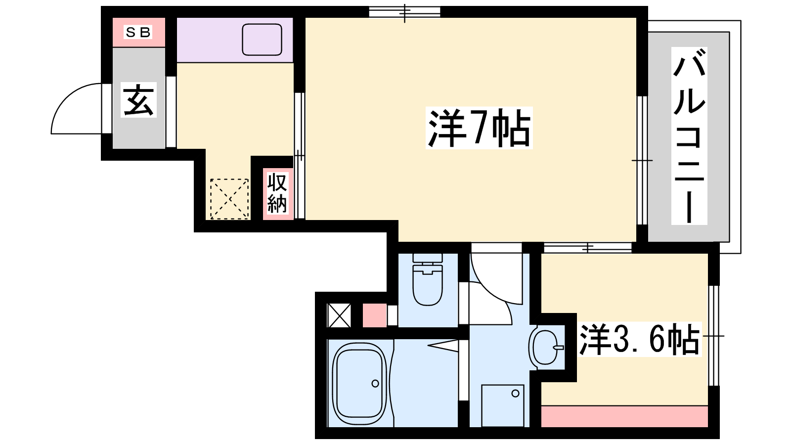 - 洋室7帖、洋室3.6帖
