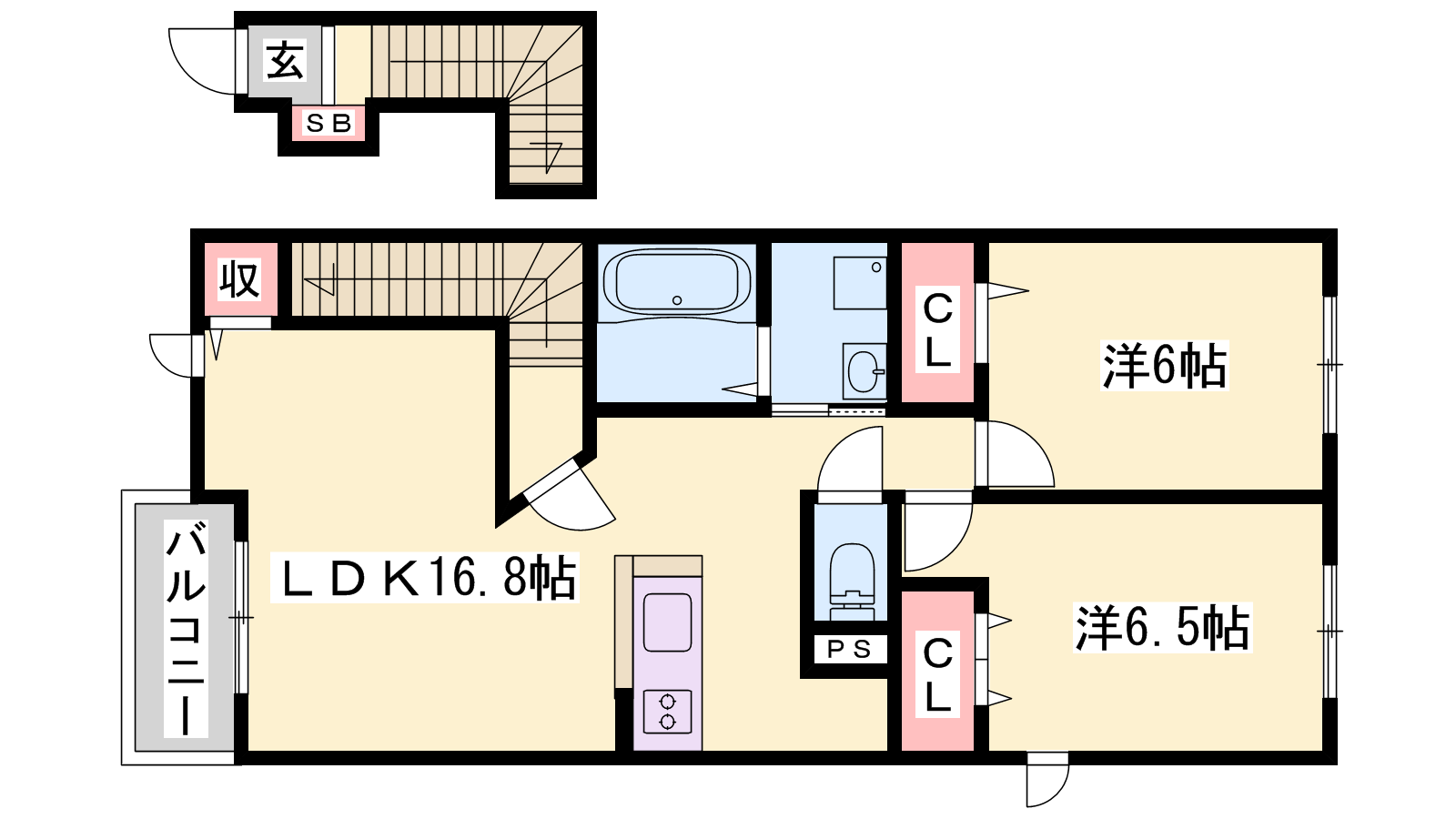- LDK16.8帖、洋室6.5帖、洋室6帖
