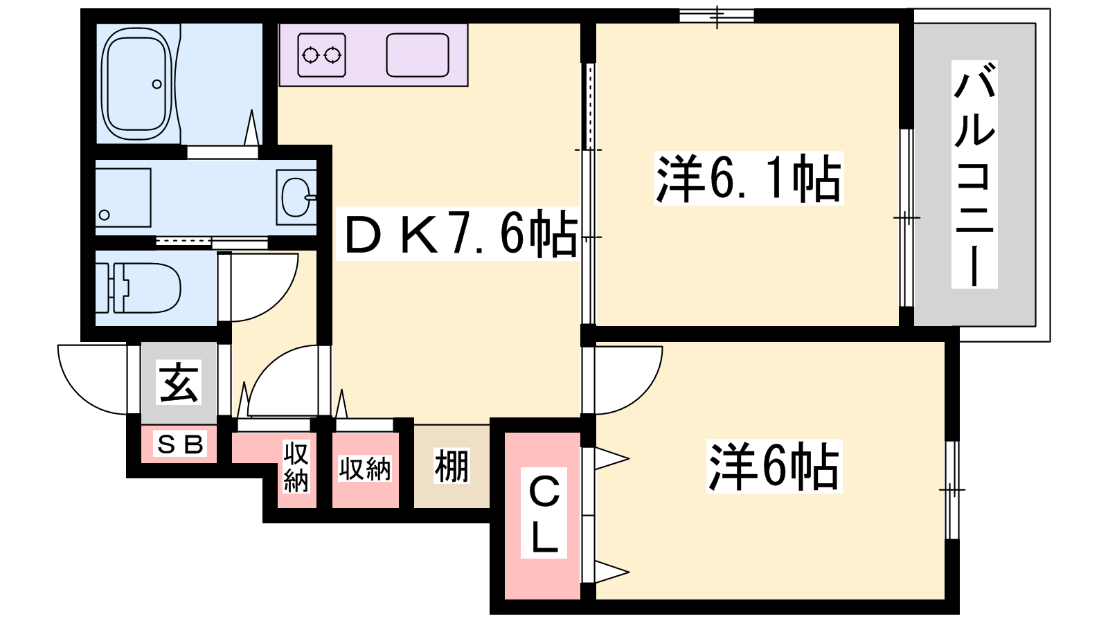 - DK7.6帖、洋室6.1帖、洋室6帖