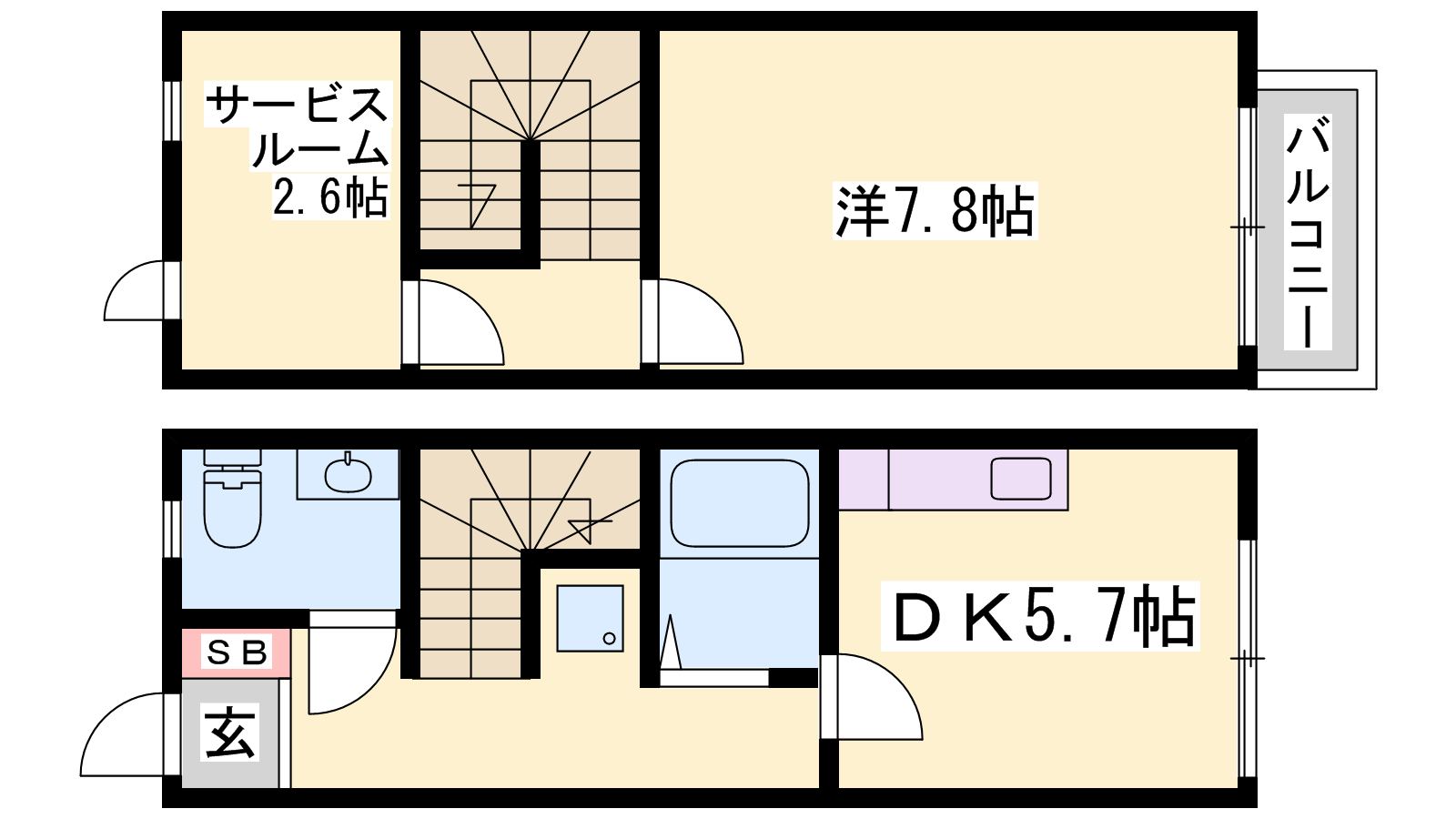 - DK5.7帖、洋室7.8帖、S2.6帖