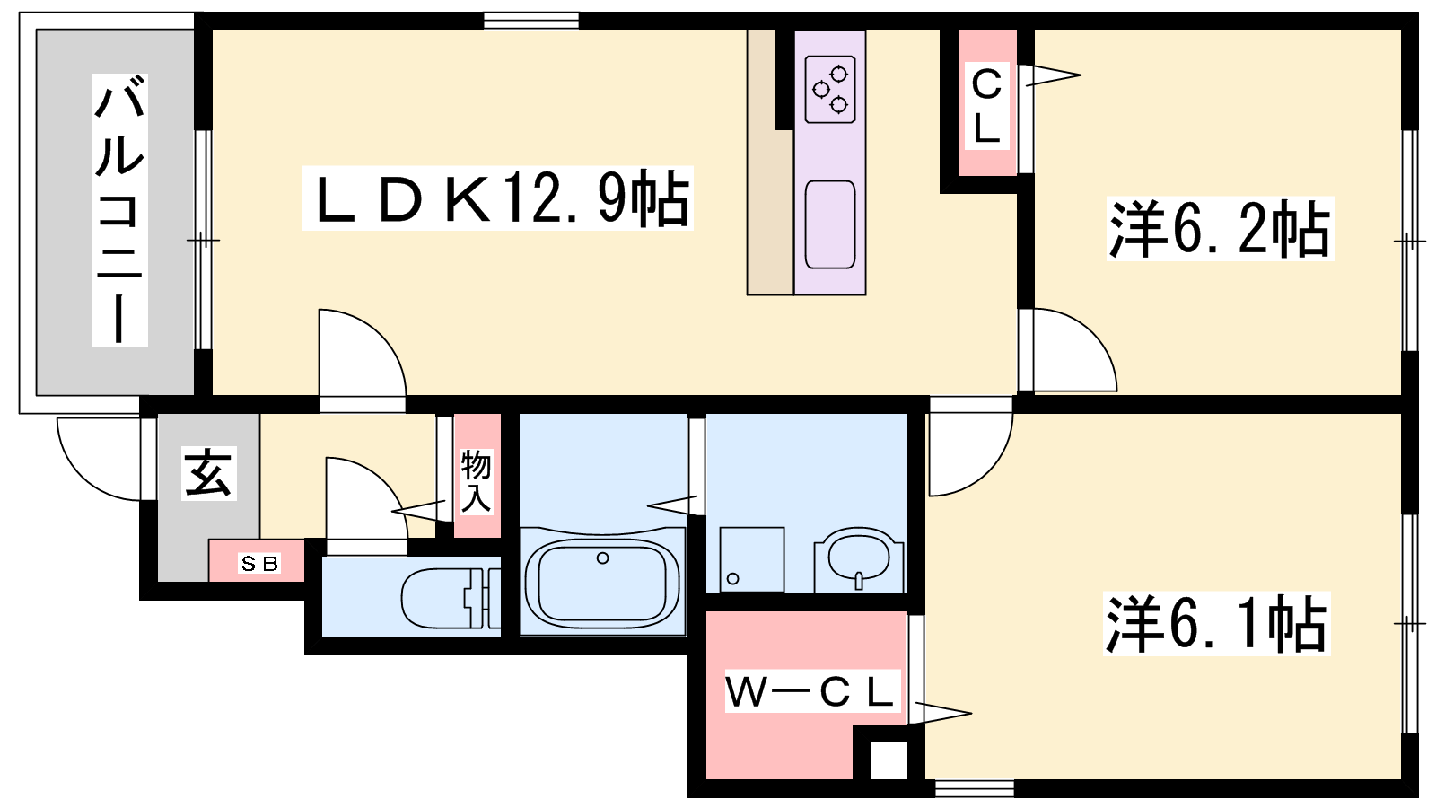 - LDK12.9帖、洋室6.9帖、洋室6.2帖