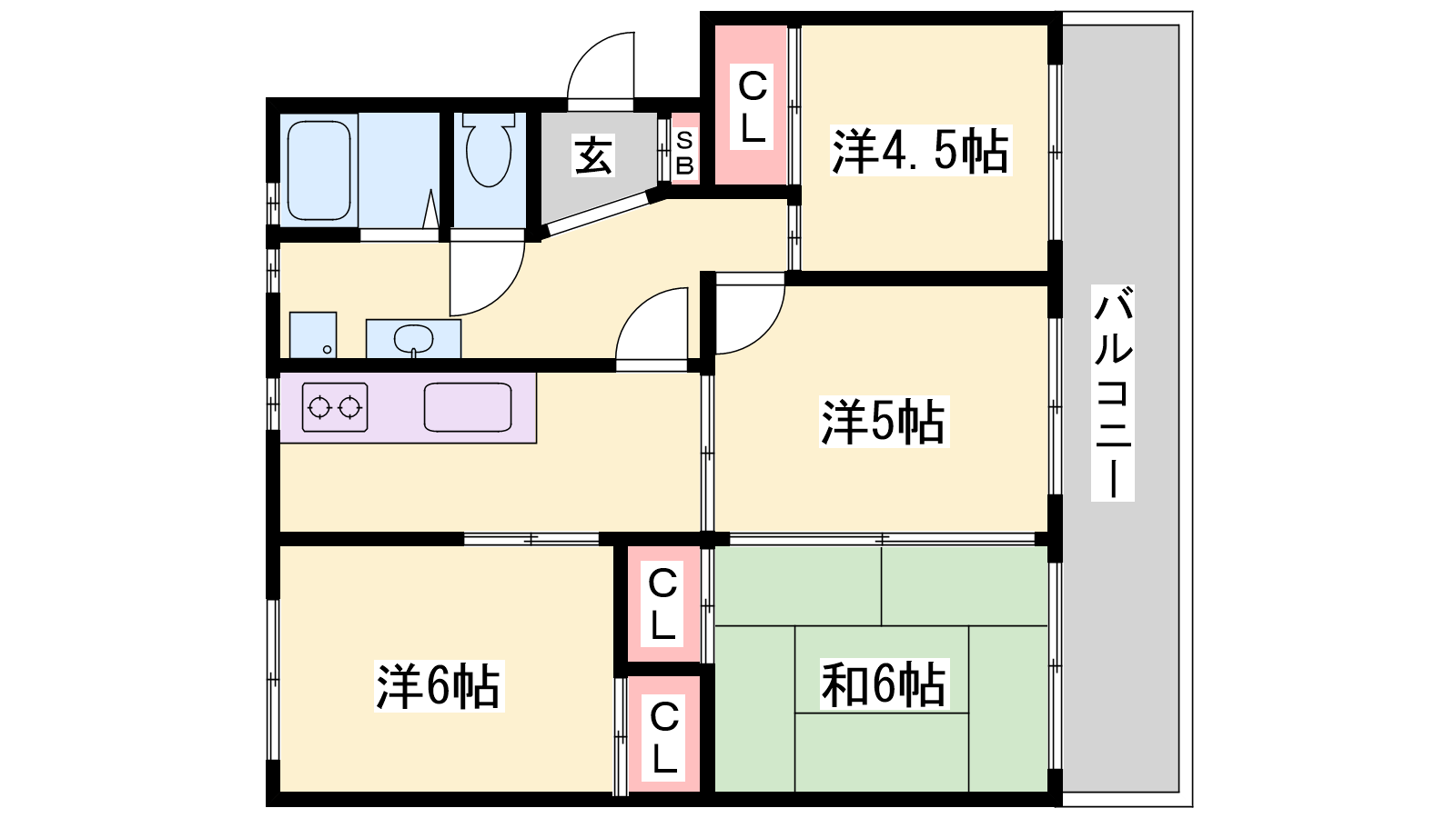 - DK4帖、洋室6帖、洋室4.5帖、和室6帖、洋室5帖