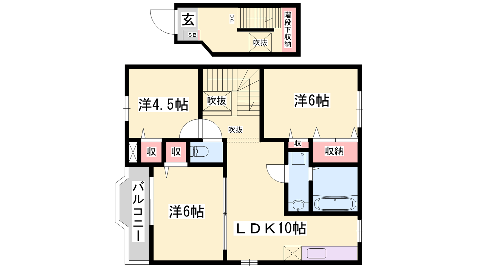 - LDK10帖、洋室6帖、洋室6帖、洋室4.5帖