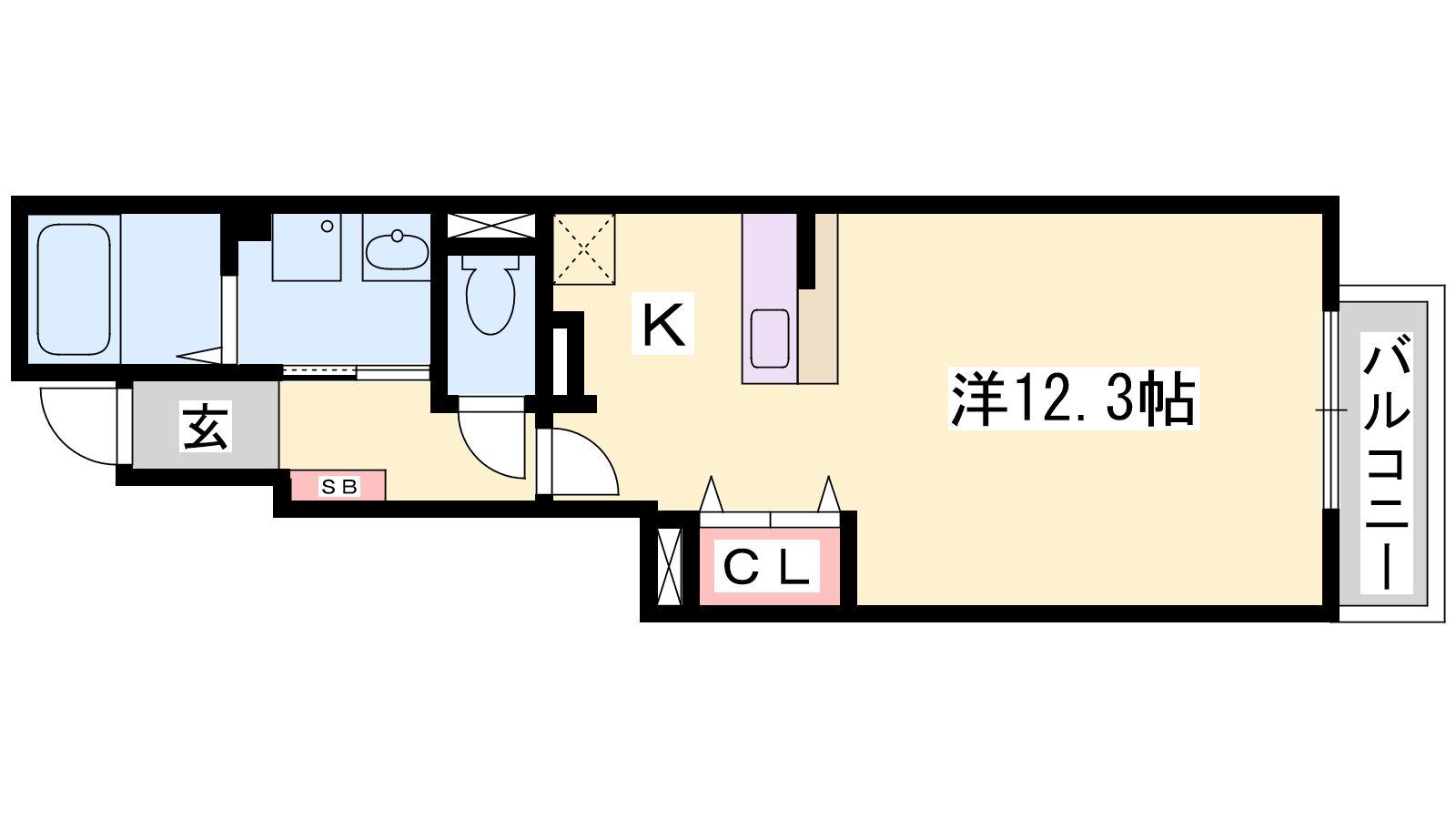 - K2帖、洋室12.3帖