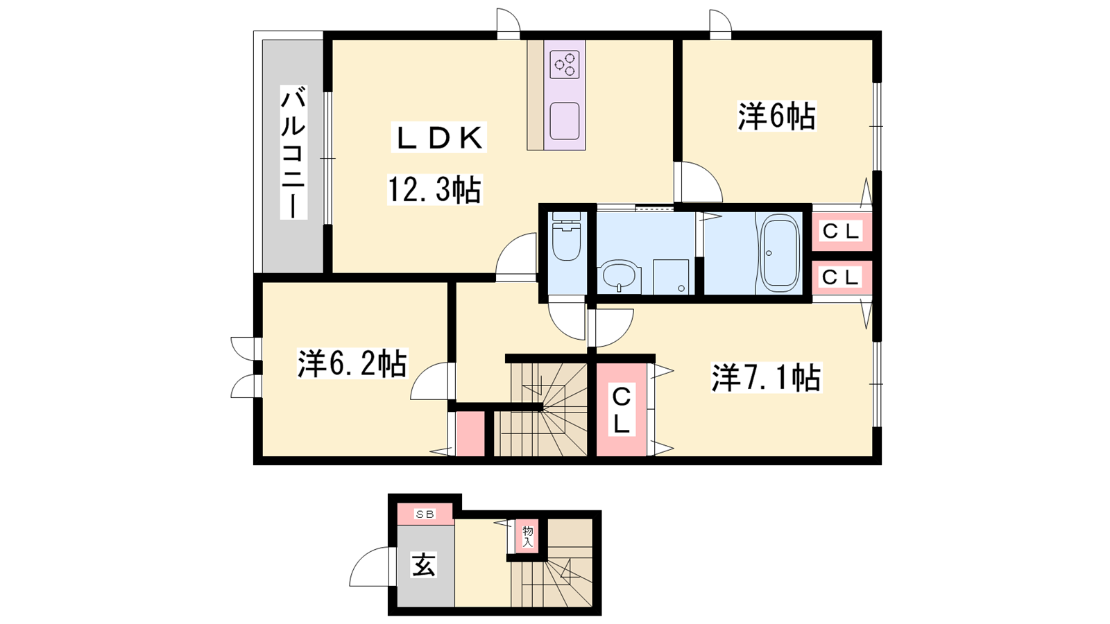 - LDK12.3帖、洋室7.2帖、洋室6帖、洋室6.2帖