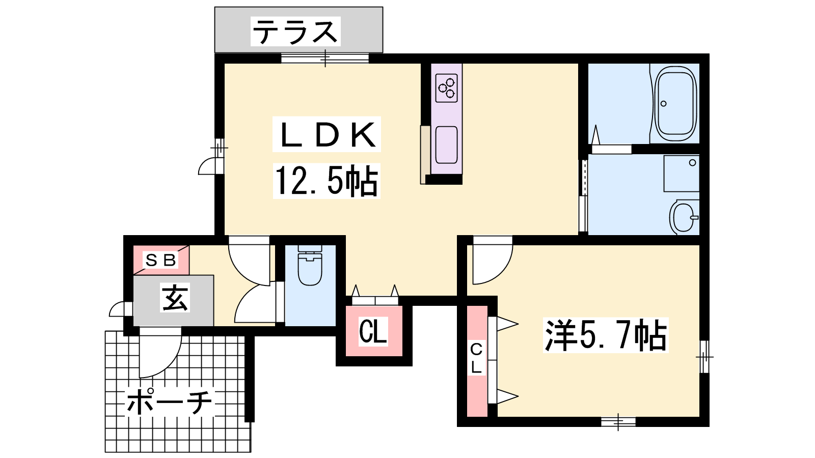 - LDK12.5帖、洋室5.7帖