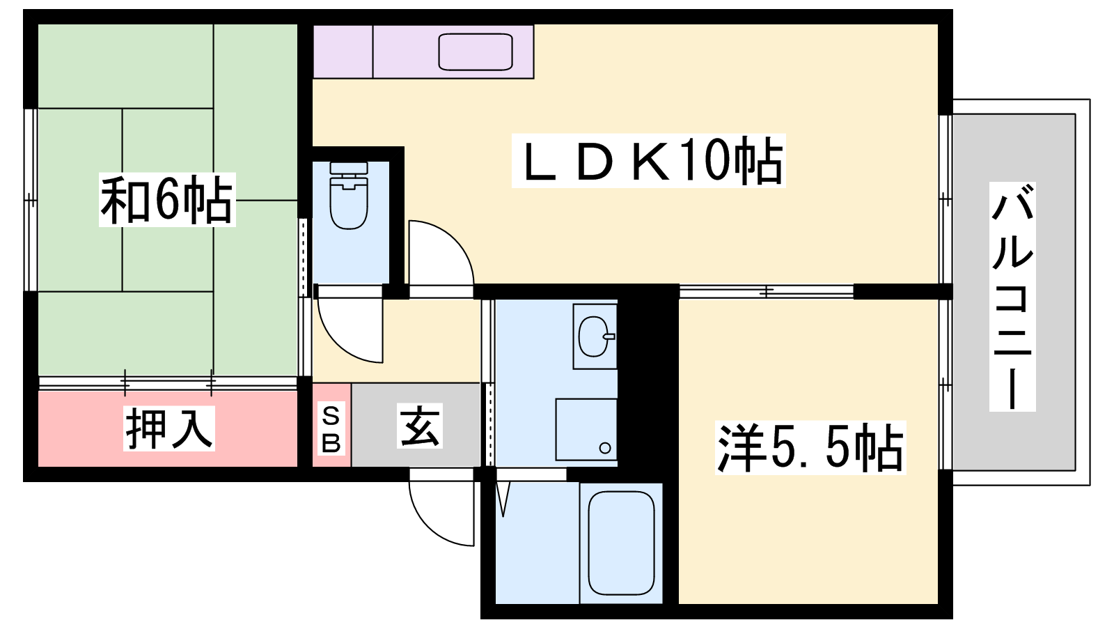 - LDK10帖、洋室5.5帖、和室6帖