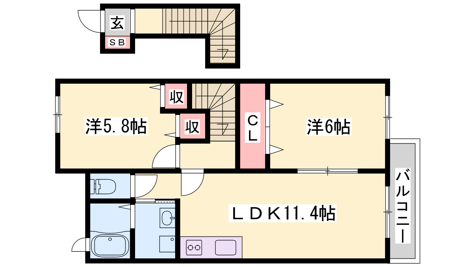 - LDK11.4帖、洋室6帖、洋室5.8帖