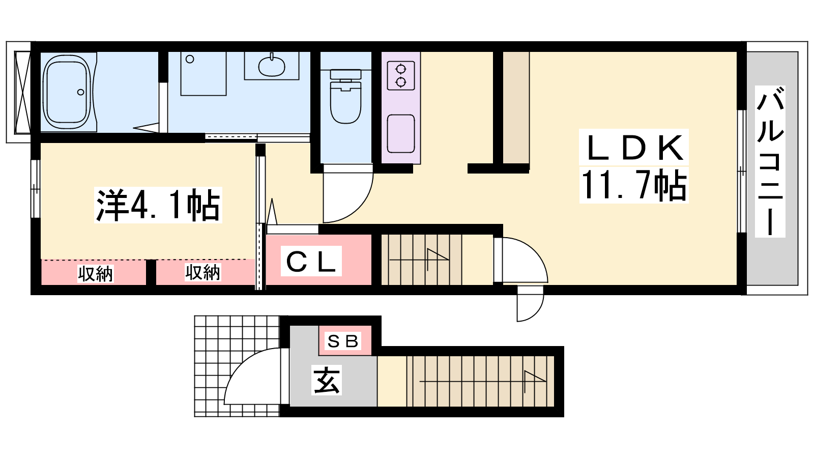 - LDK11.7帖、洋室4.1帖