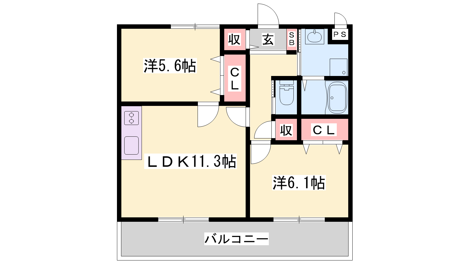 - LDK11.3帖、洋室6.1帖、洋室5.6帖
