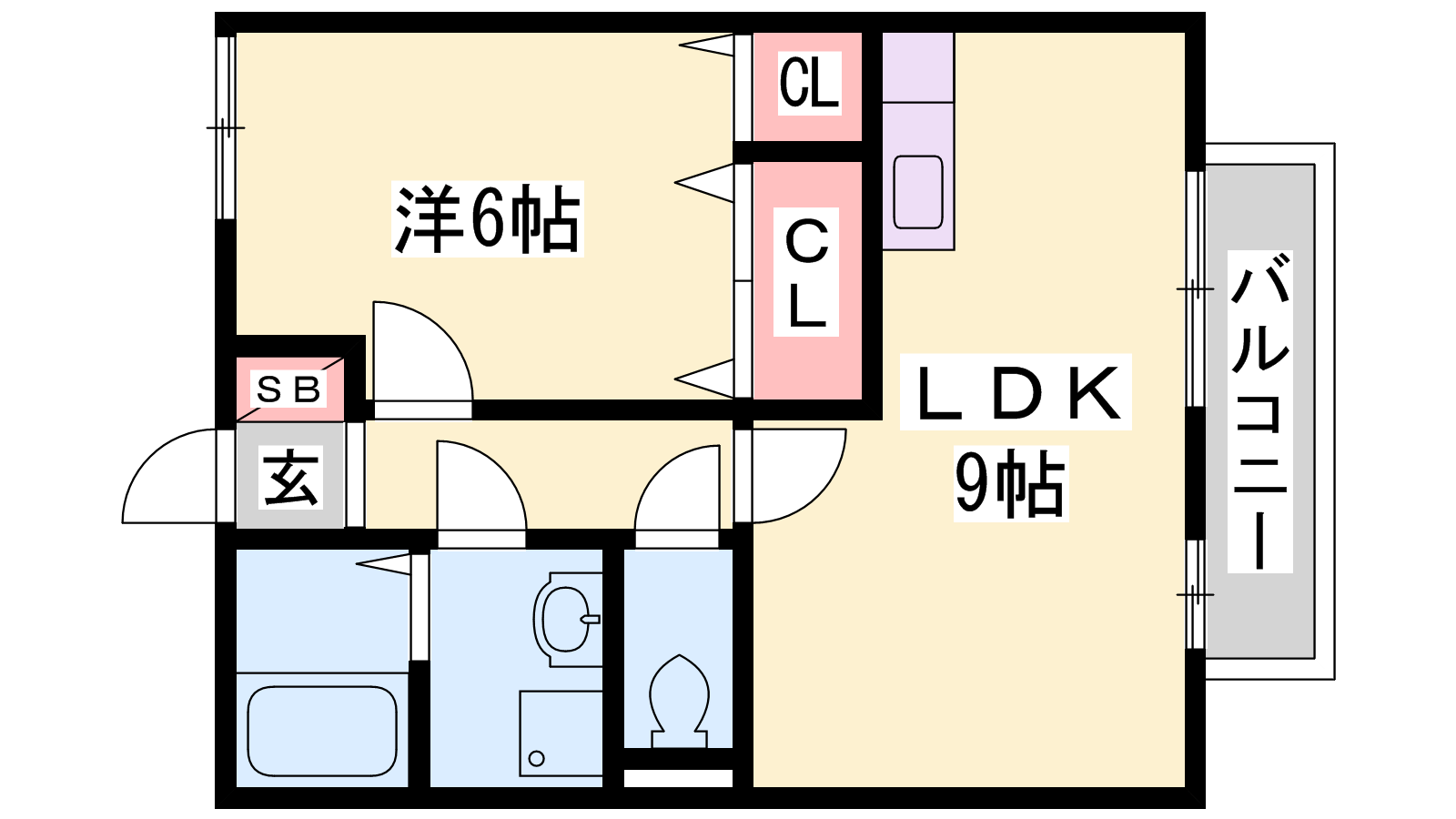 - LDK9帖、洋室6帖