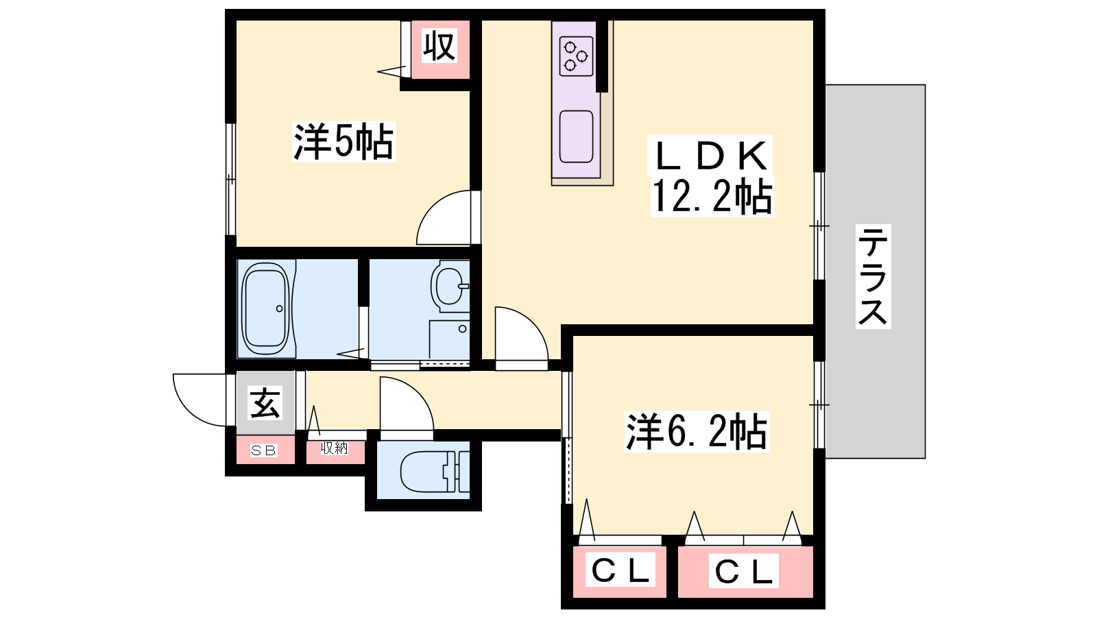 - LDK12.2帖、洋室6.2帖、洋室5帖