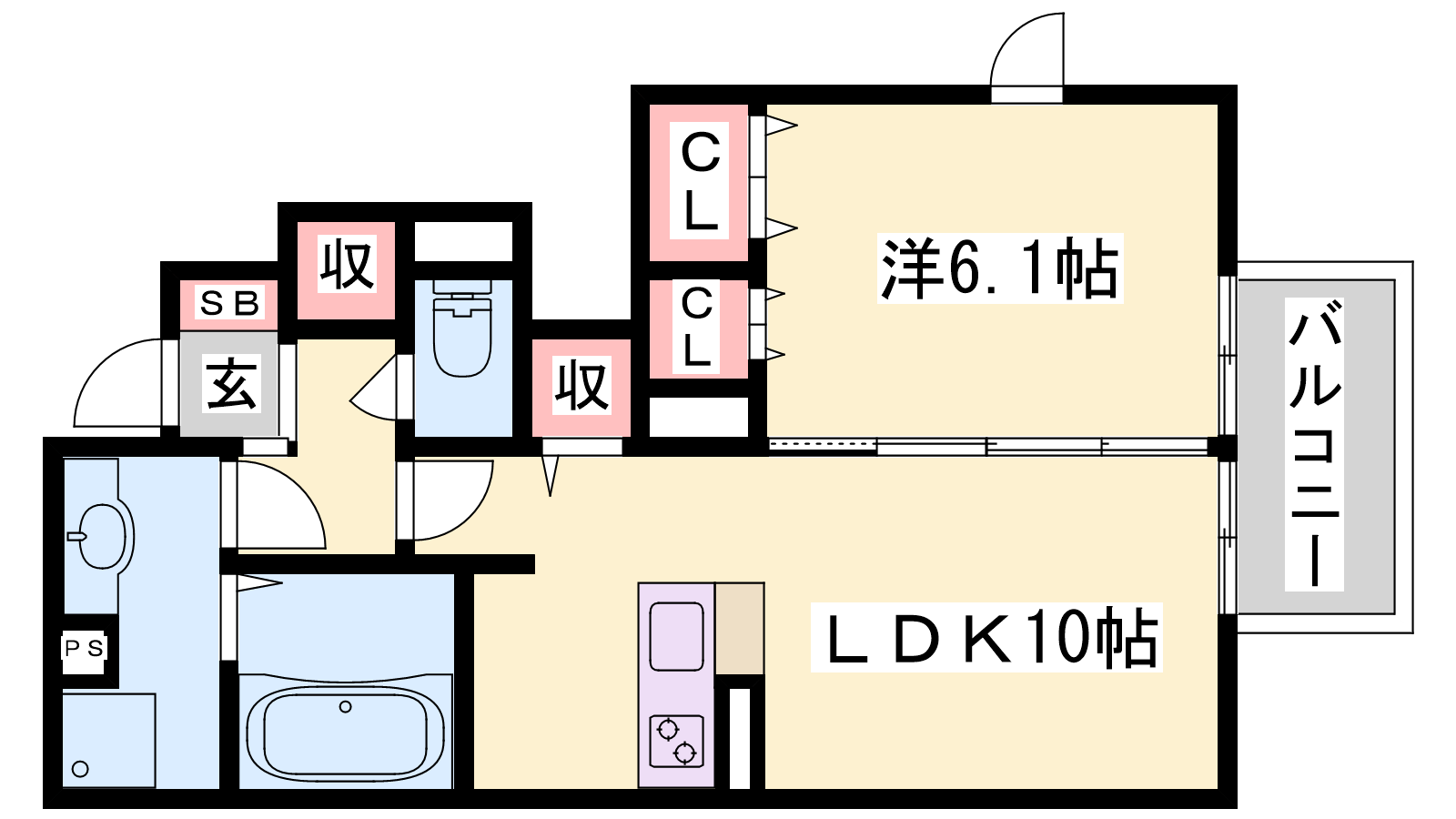 - LDK10帖、洋室6.1帖