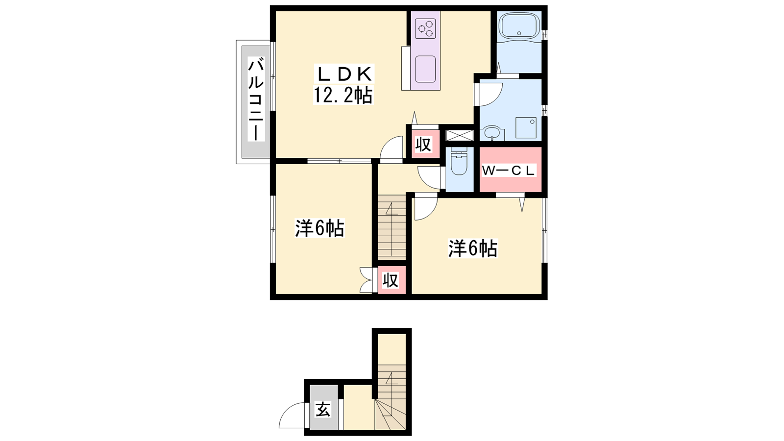 - LDK12.2帖、洋室6帖、洋室6帖