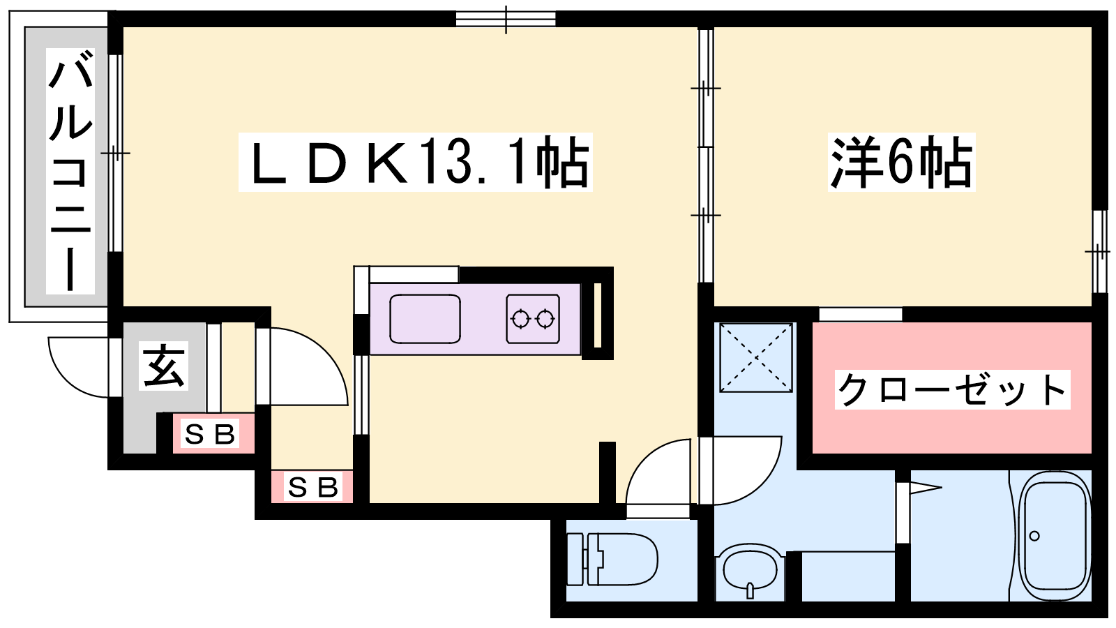 - LDK13.1帖、洋室6帖
