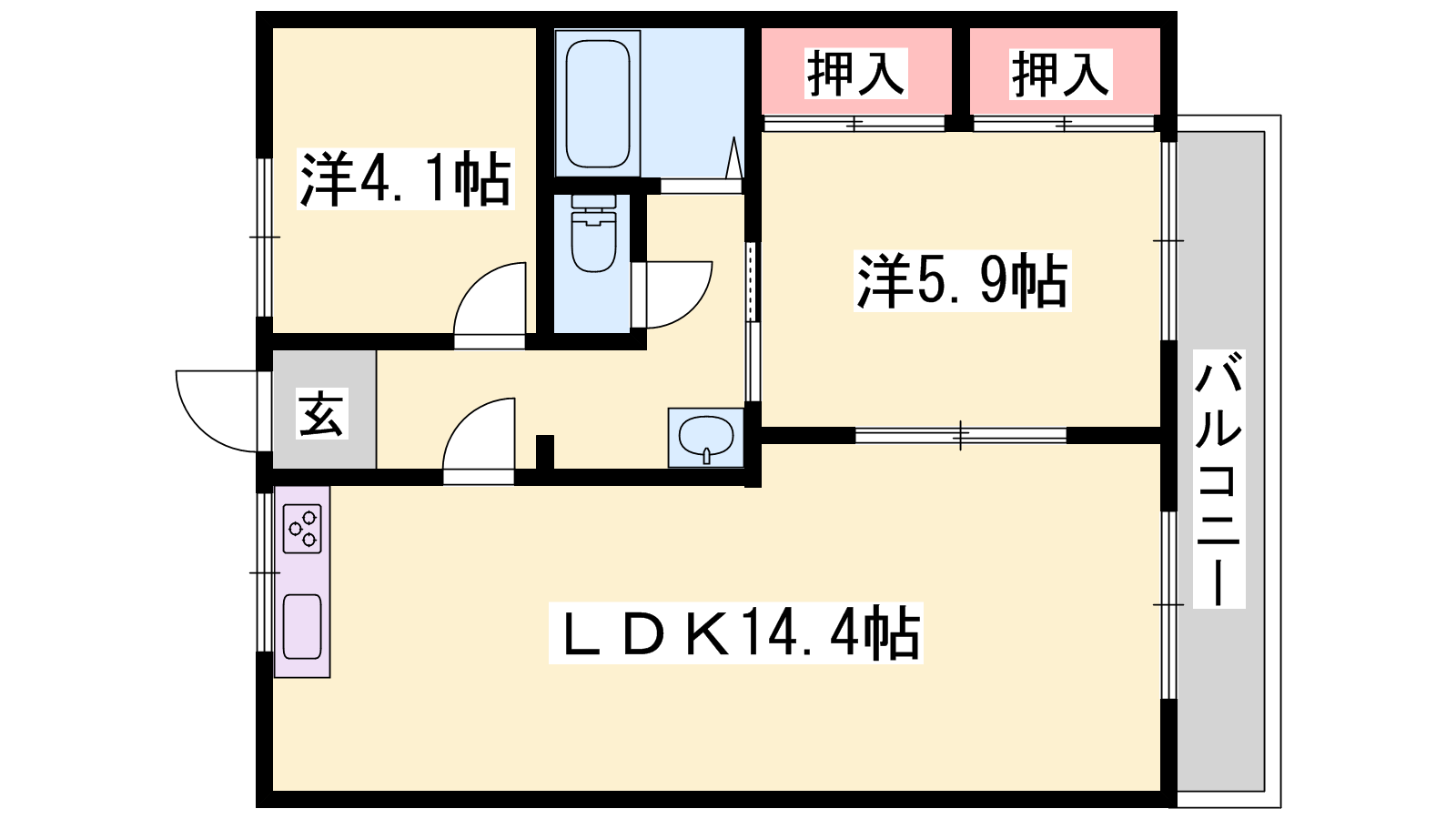 - LDK14.4帖、洋室5.9帖、洋室4.1帖