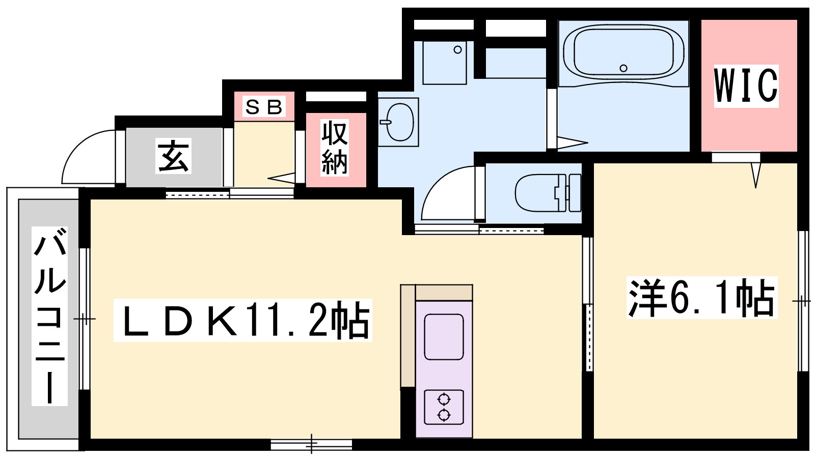 - LDK11.2帖、洋室6.1帖