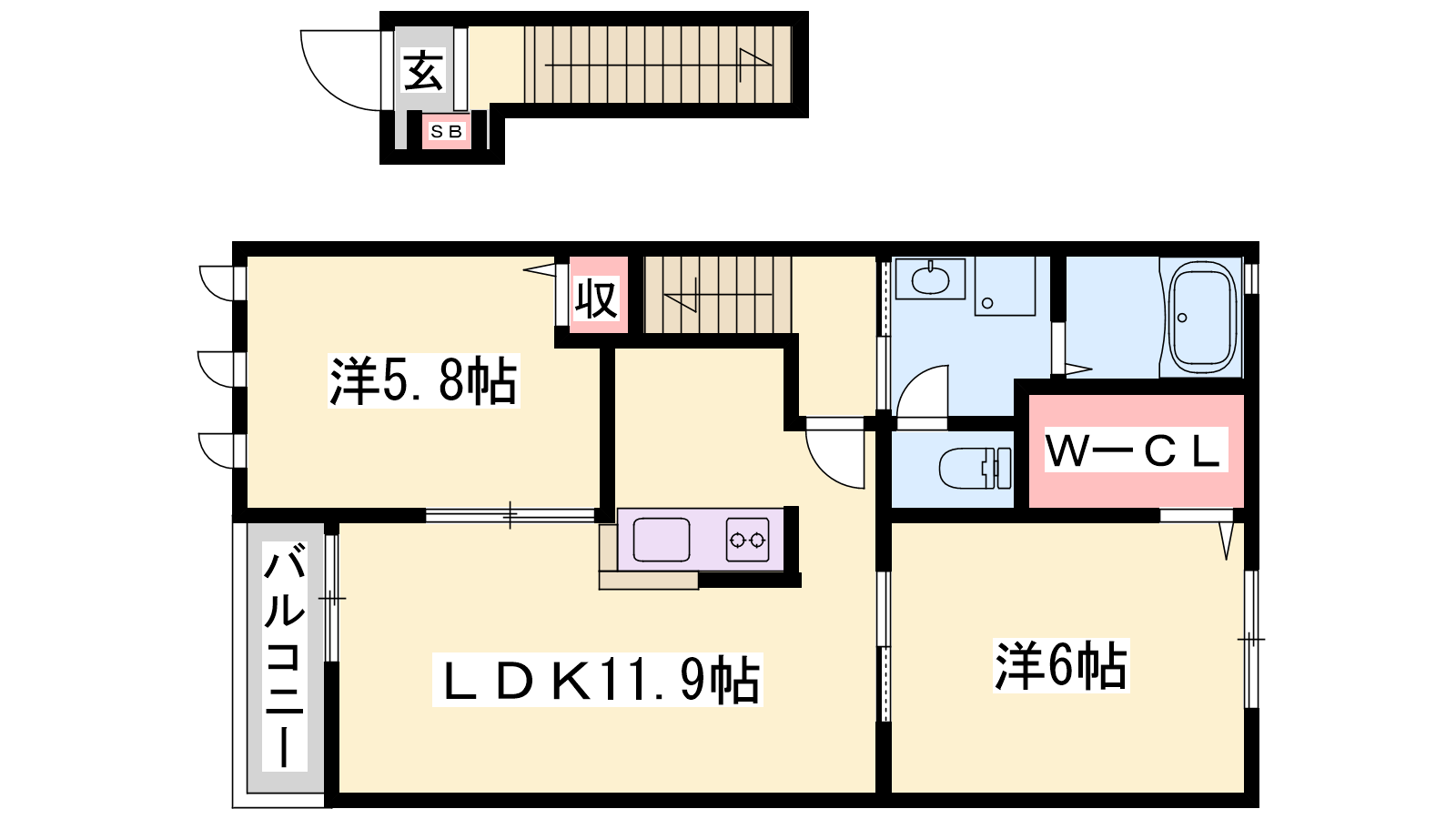- LDK11.9帖、洋室6帖、洋室5.8帖