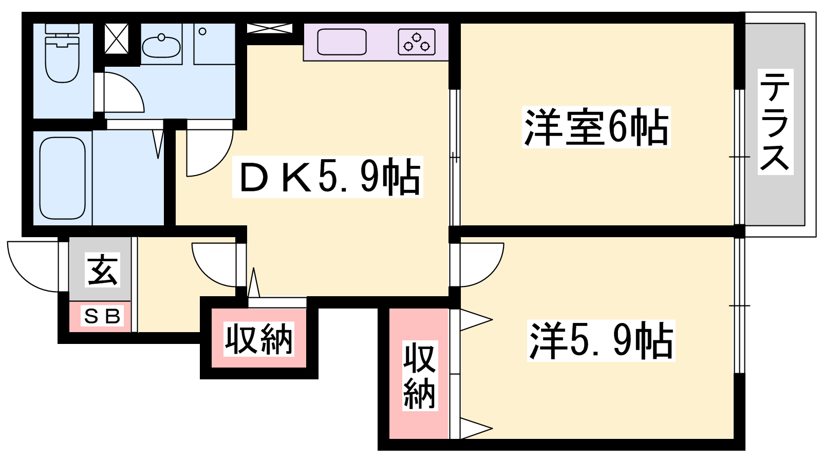 - DK5.9帖、洋室6帖、洋室5.9帖