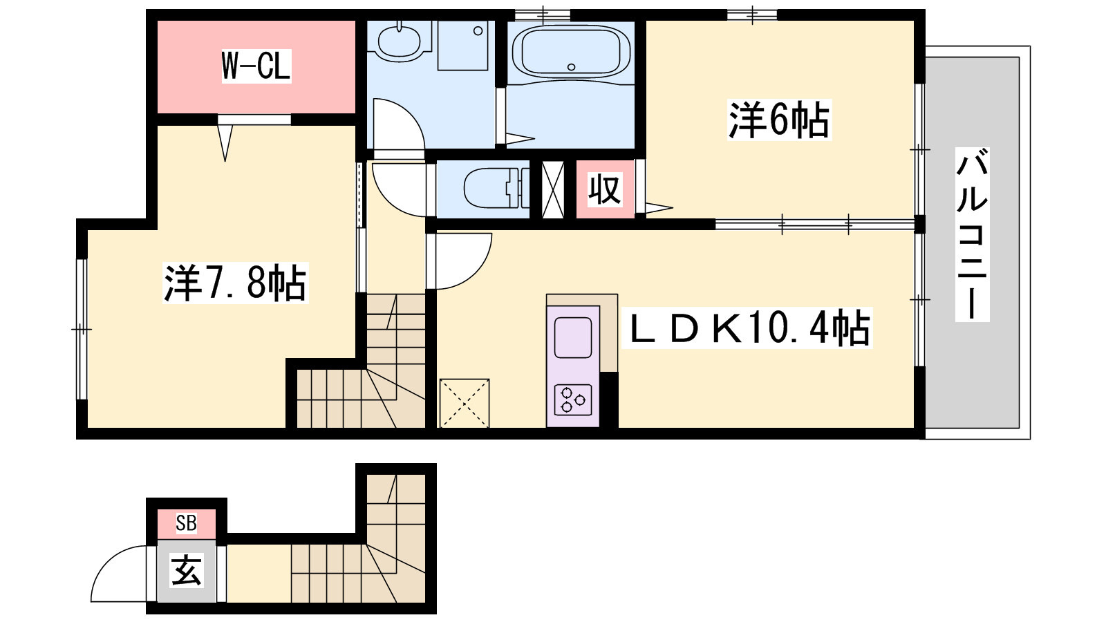 - LDK10.4帖、洋室6.1帖、洋室7.8帖