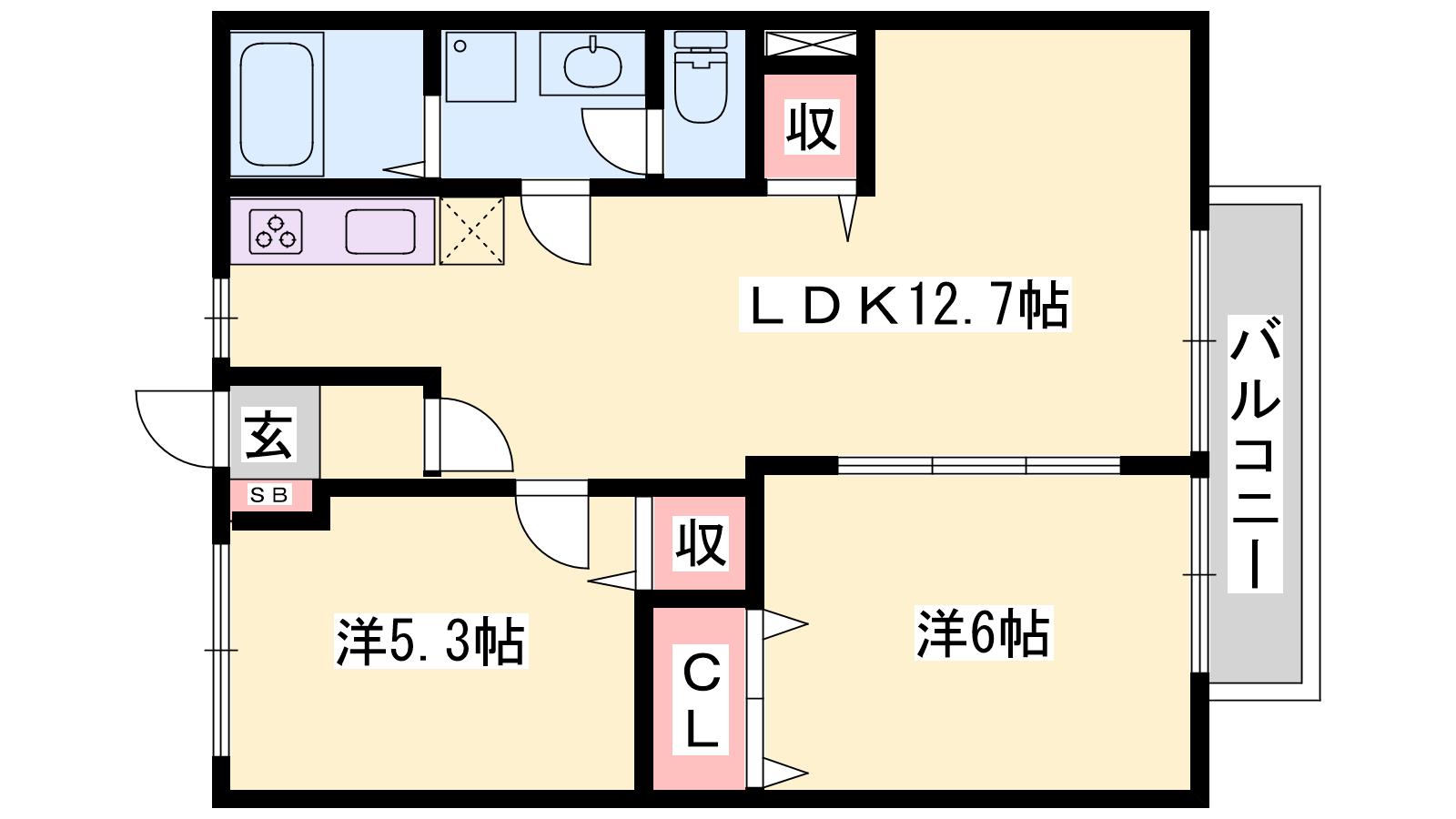 - LDK12.7帖、洋室6帖、洋室5.3帖