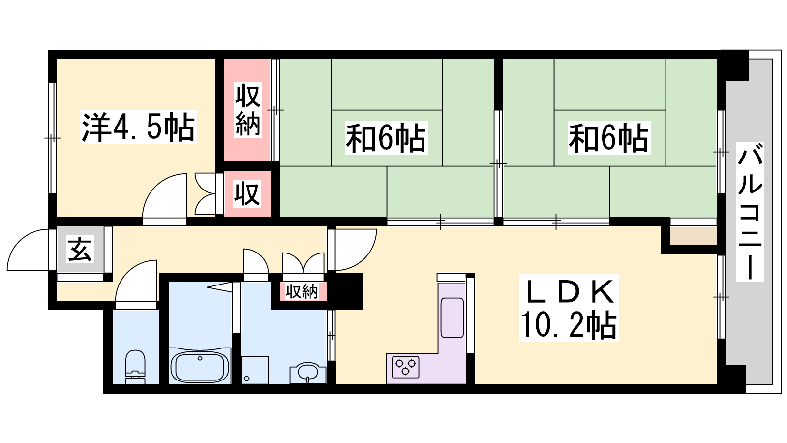 - LDK10.2帖、和室6帖、和室6帖、洋室5.2帖