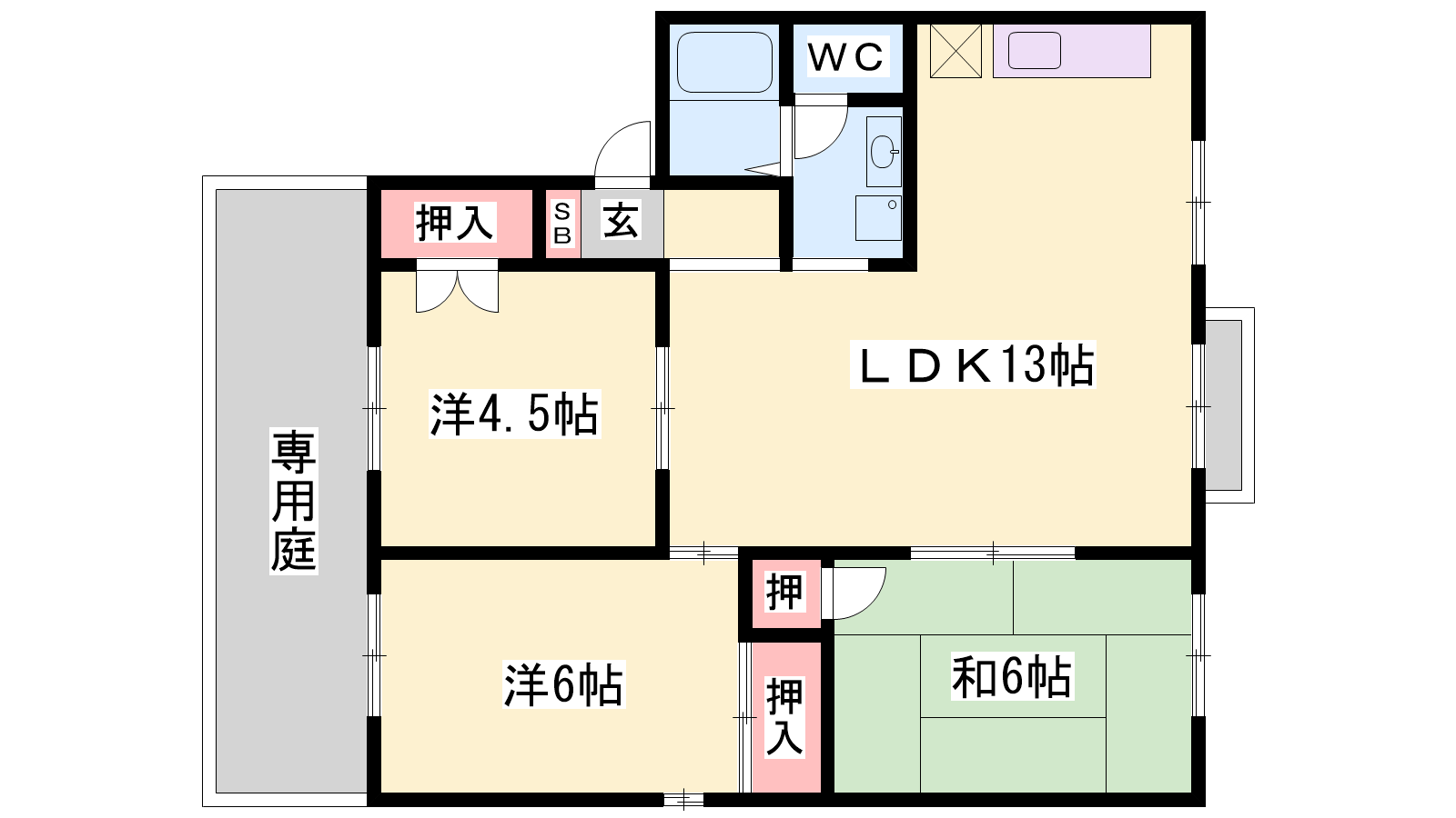 - LDK13帖、洋室6帖、洋室4.5帖、和室6帖