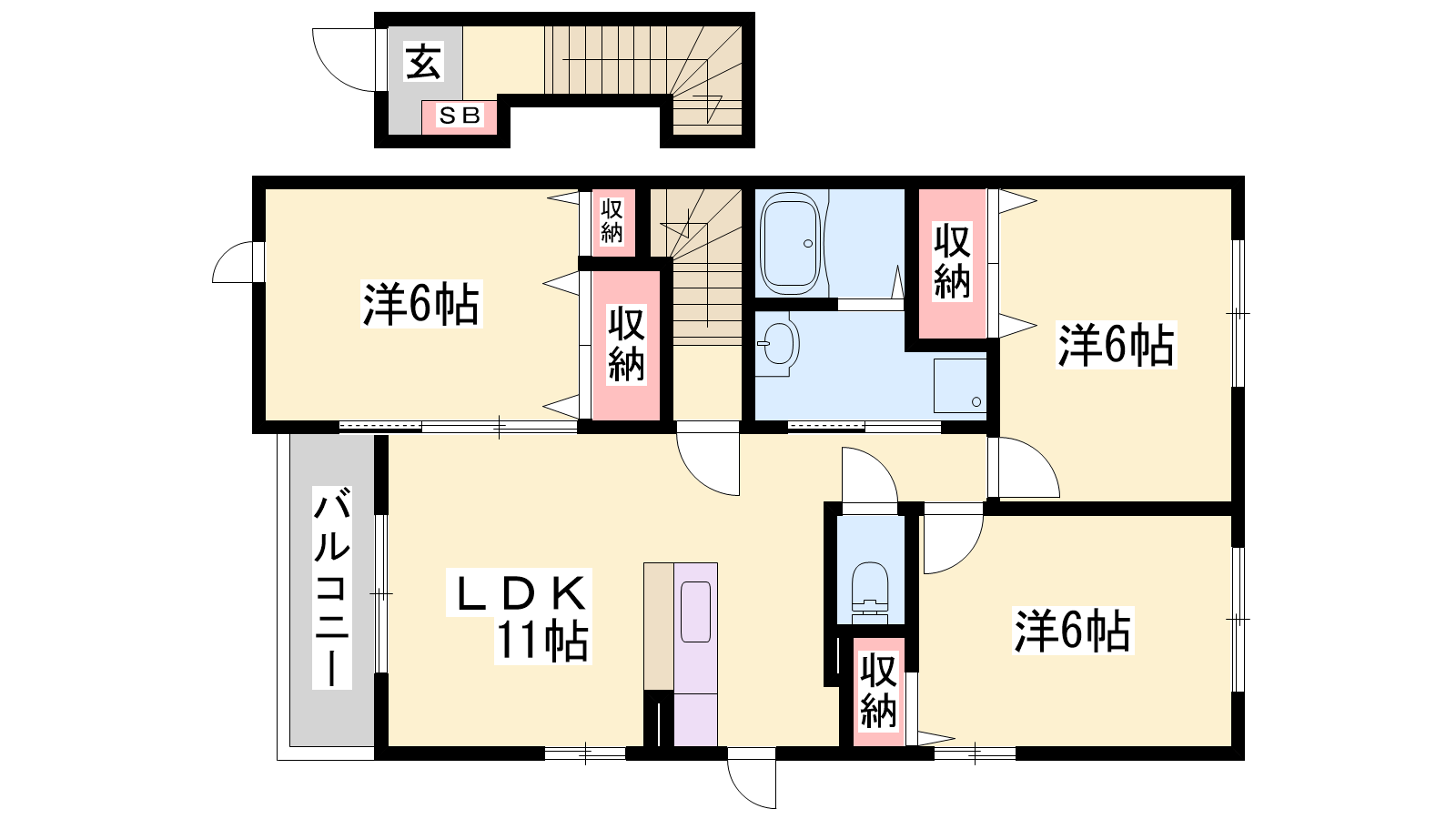 - LDK11帖、洋室6帖、洋室6帖、洋室6帖