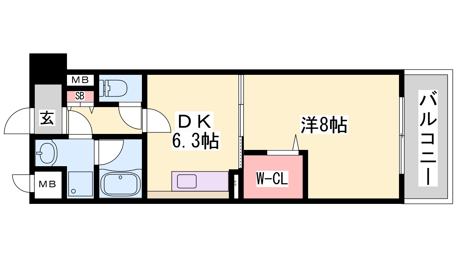 - DK6.3帖、洋室8帖