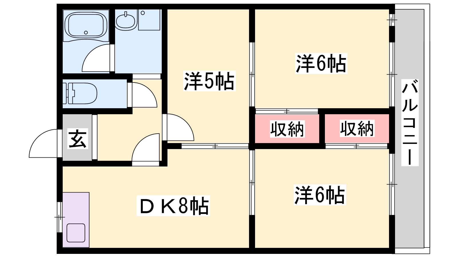 - DK8帖、洋室6帖、洋室6帖、洋室5帖