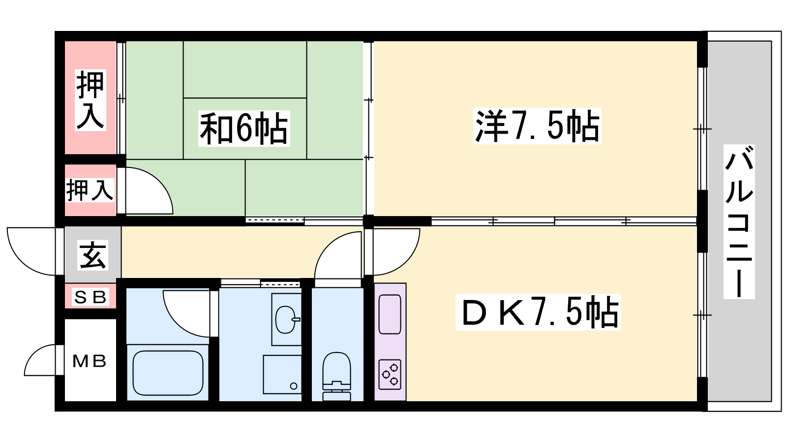 - DK7.5帖、洋室7.5帖、洋室6帖