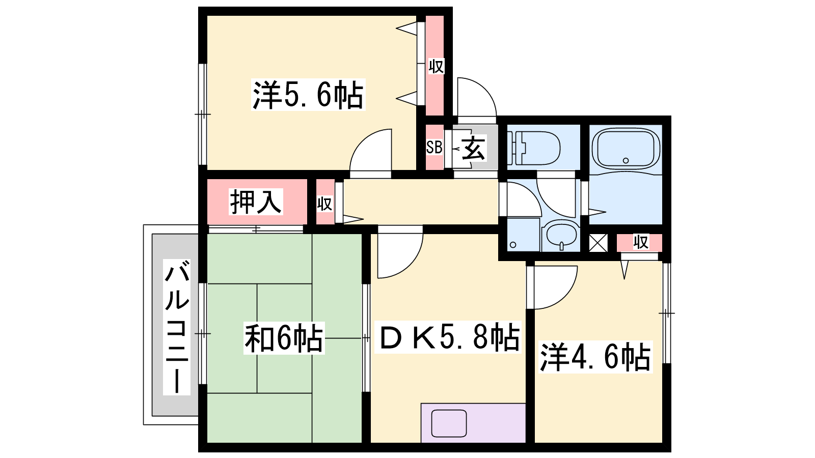 - DK5.8帖、和室6帖、洋室5.6帖、洋室4.6帖