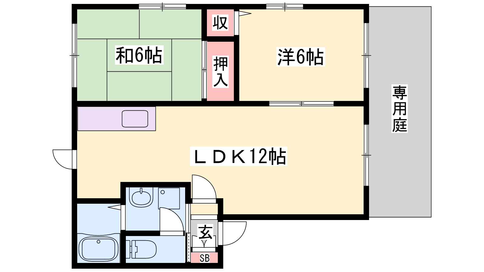 - LDK12帖、和室6帖、洋室6帖