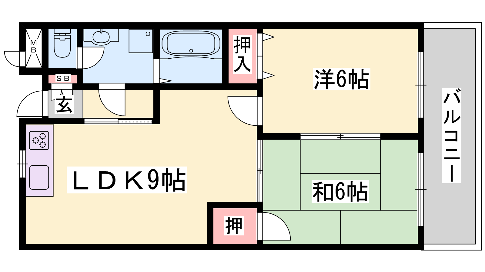 - LDK9帖、和室6帖、洋室6帖