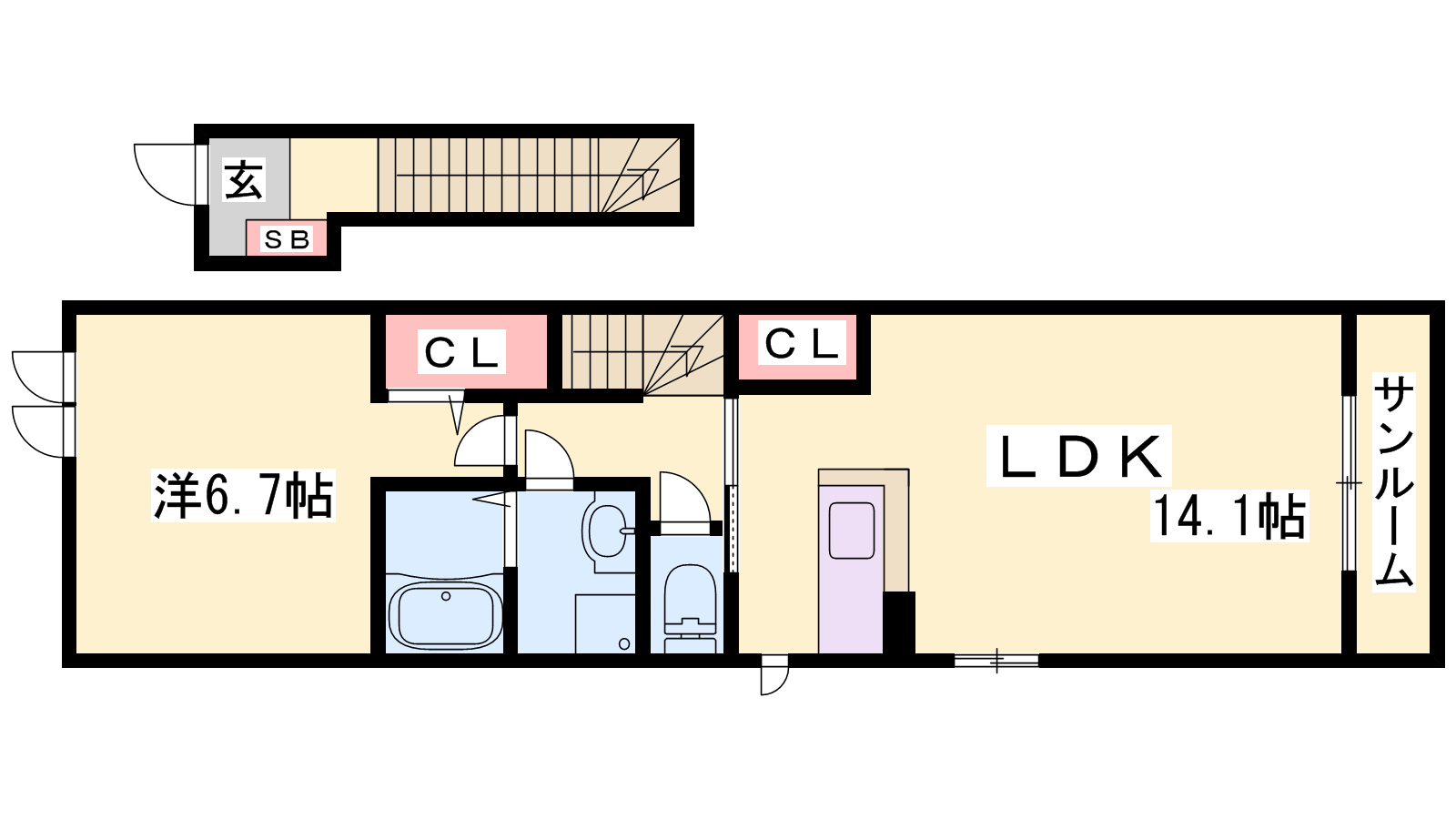 - LDK14.1帖、洋室6.7帖