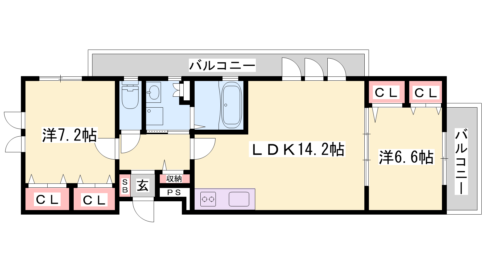 - LDK14.2帖、洋室7.2帖、洋室6.6帖