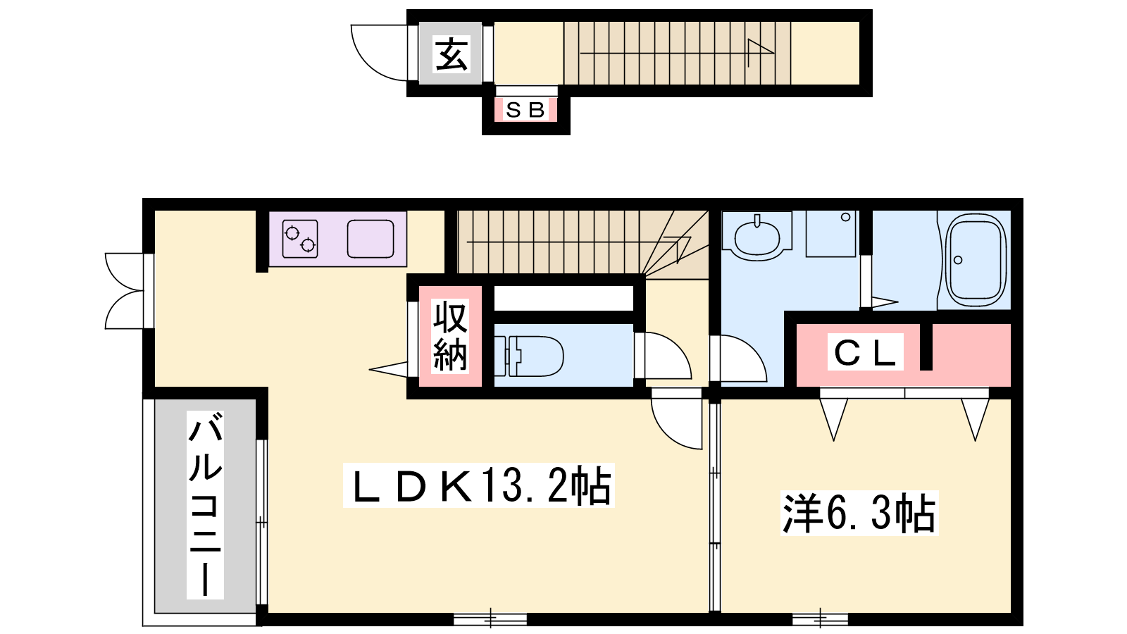 - LDK13.2帖、洋室6.3帖