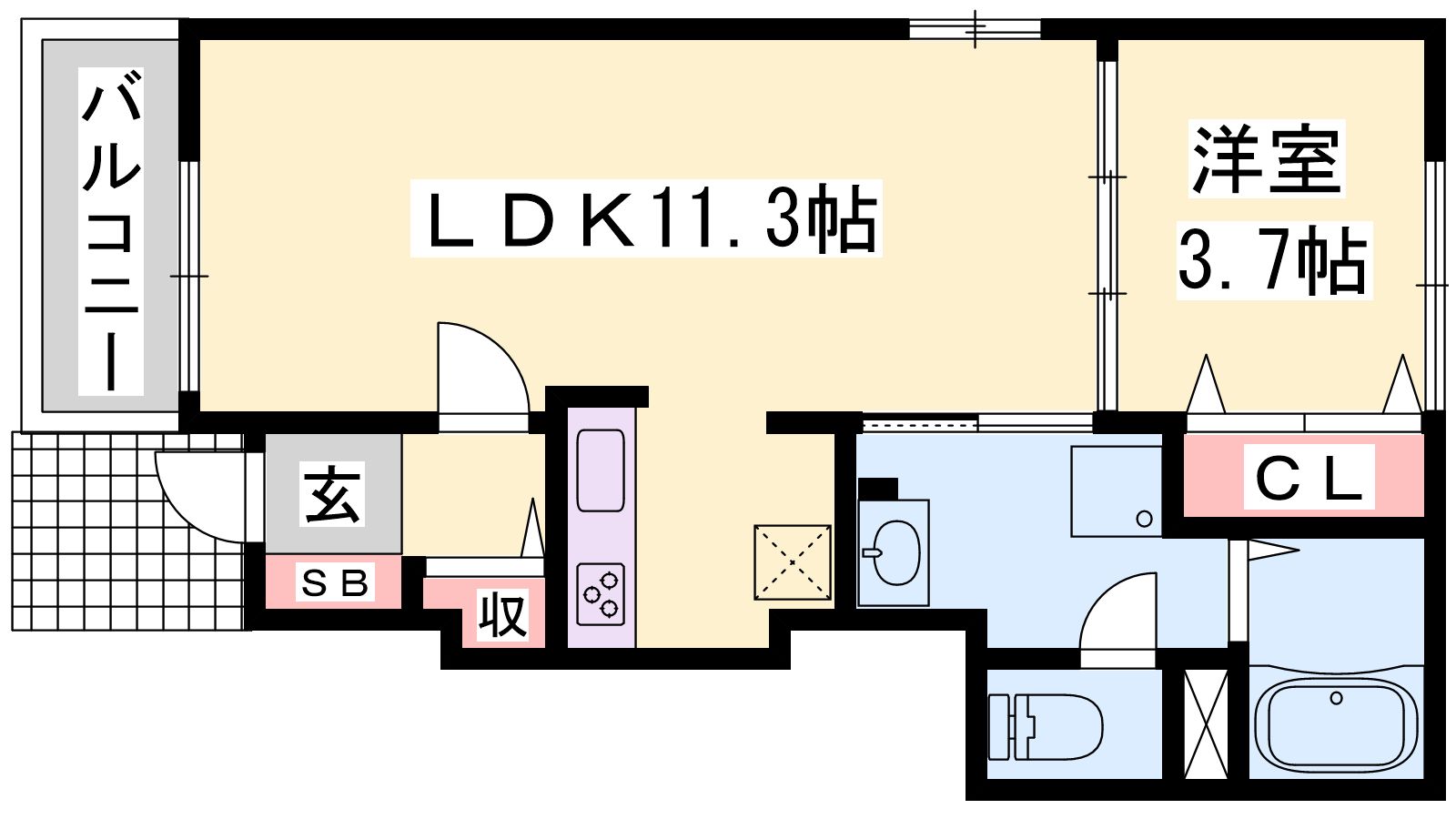 - LDK11.3帖、洋室3.7帖