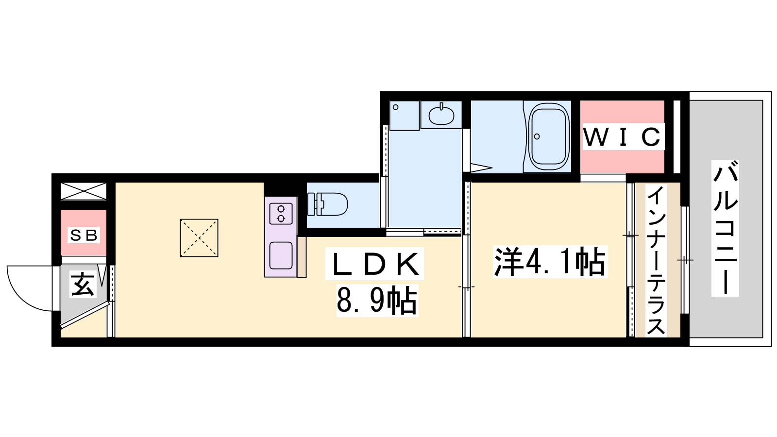 - LDK8.9帖、洋室4.1帖