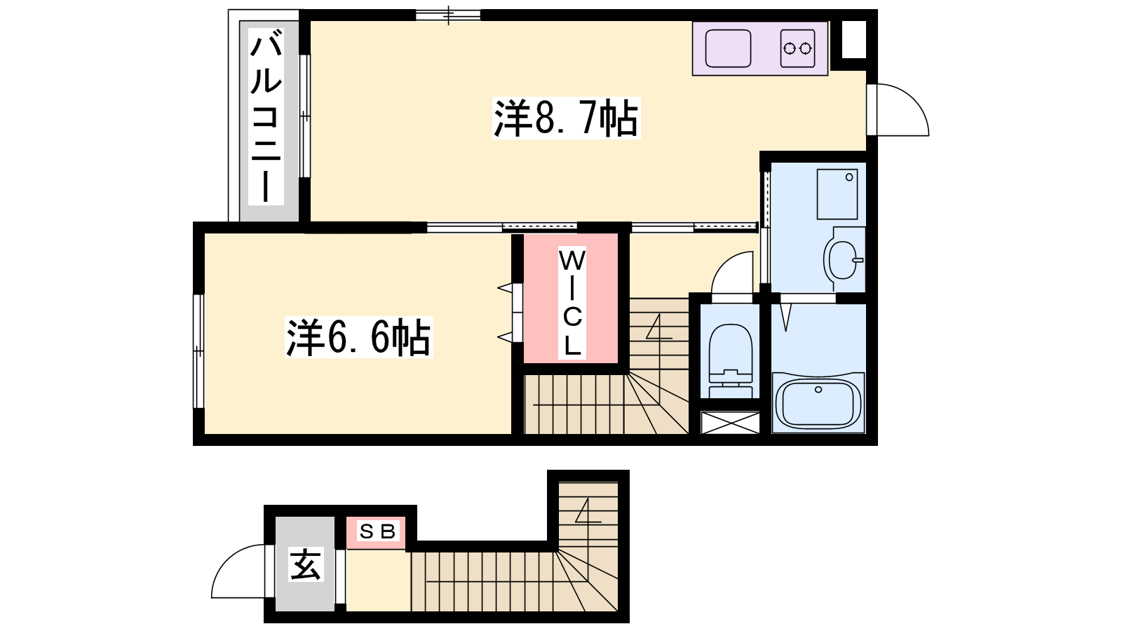 - LDK7.7帖、洋室6.6帖