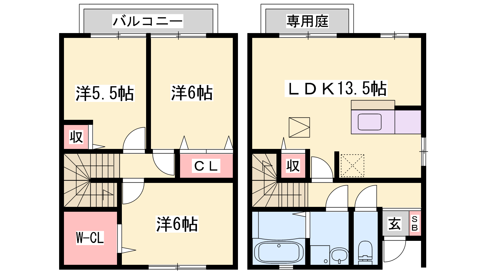 - LDK13.5帖、洋室6帖、洋室6帖、洋室5.5帖