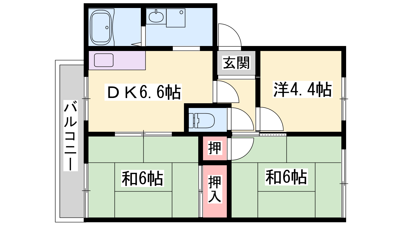 - DK6.6帖、和室6帖、洋室4.4帖、和室6帖