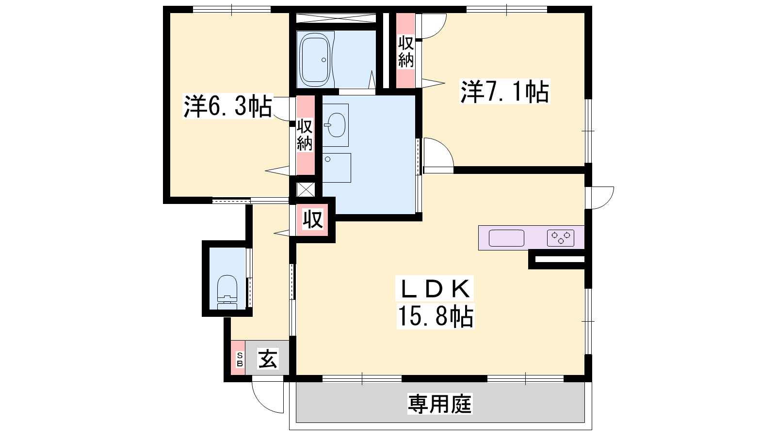 - LDK15.8帖、洋室6.3帖、洋室7.1帖