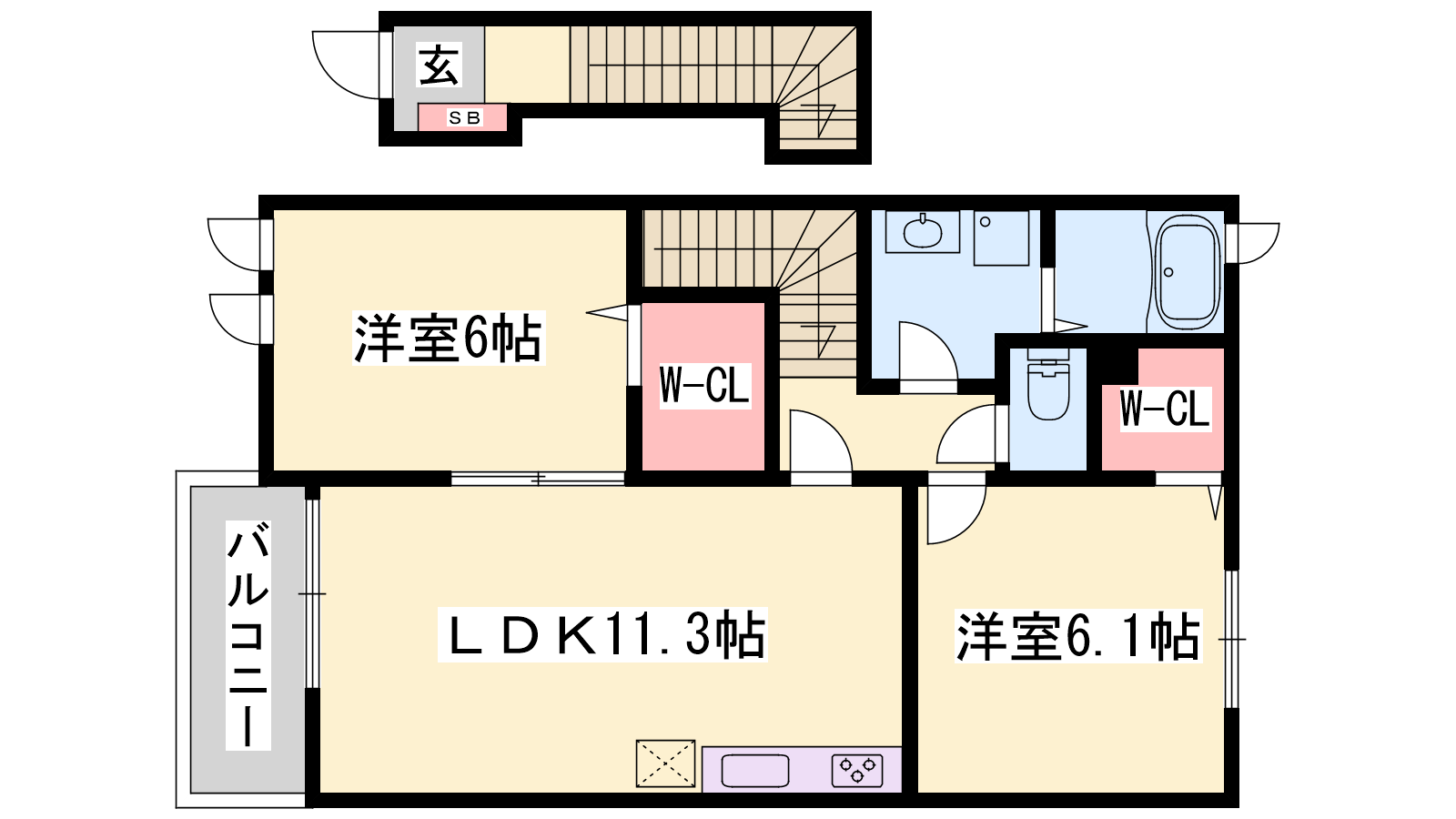 - LDK11.3帖、洋室6.1帖、洋室6帖
