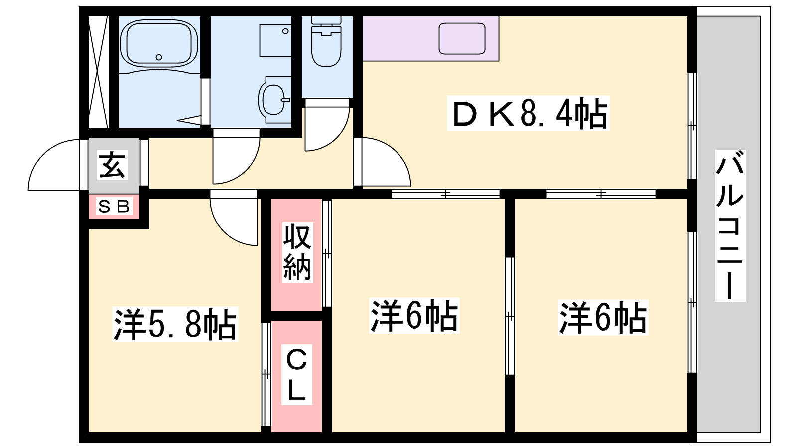 - DK8.4帖、洋室6帖、洋室6帖、洋室5.8帖