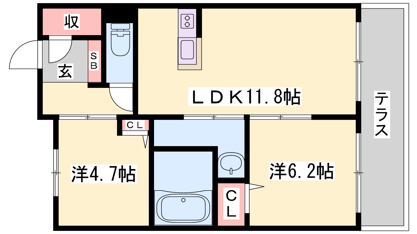 - LDK11.8帖、洋室6.4帖、洋室5.3帖