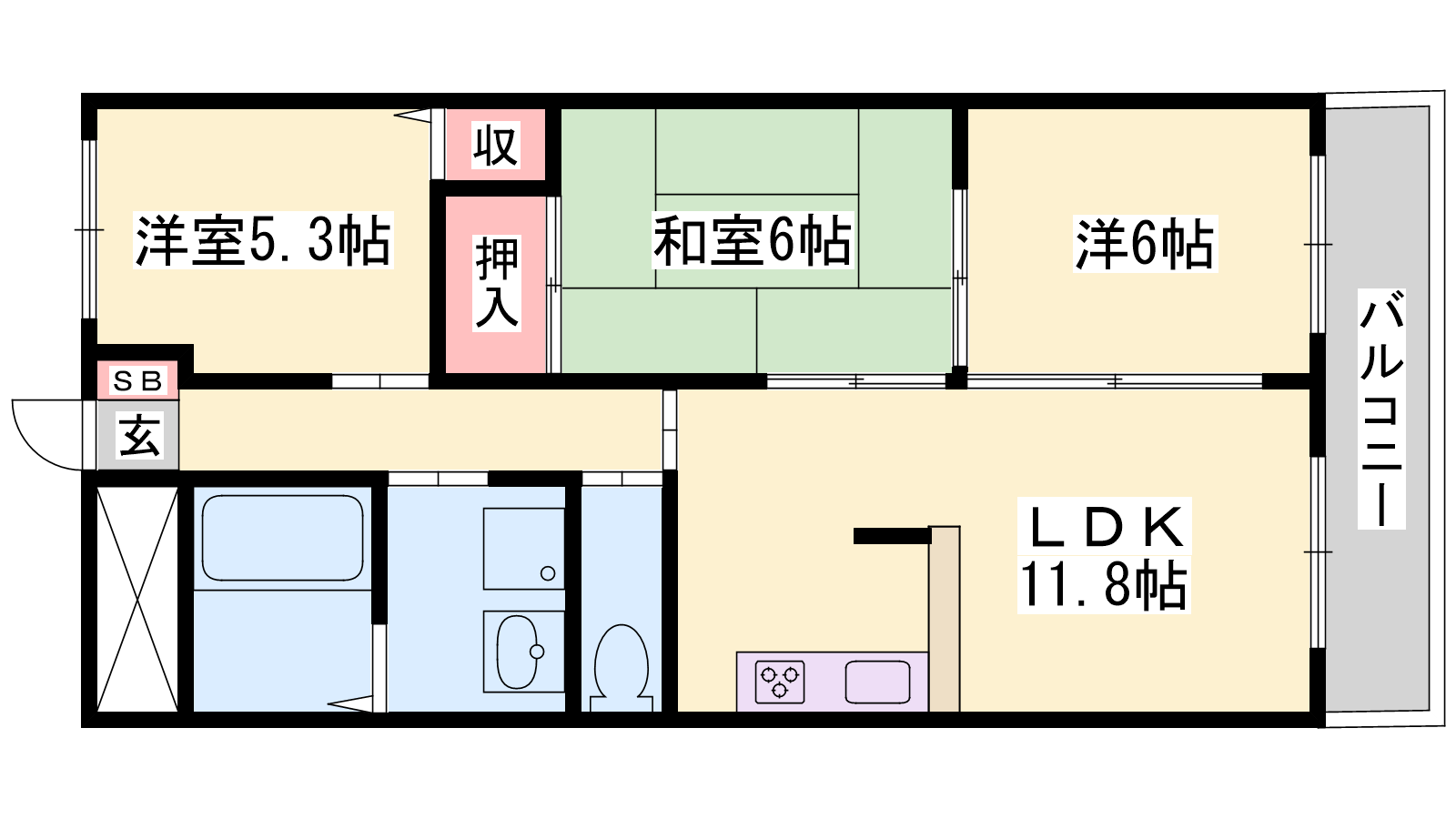 - LDK11.8帖、洋室6帖、洋室5.3帖、和室6帖