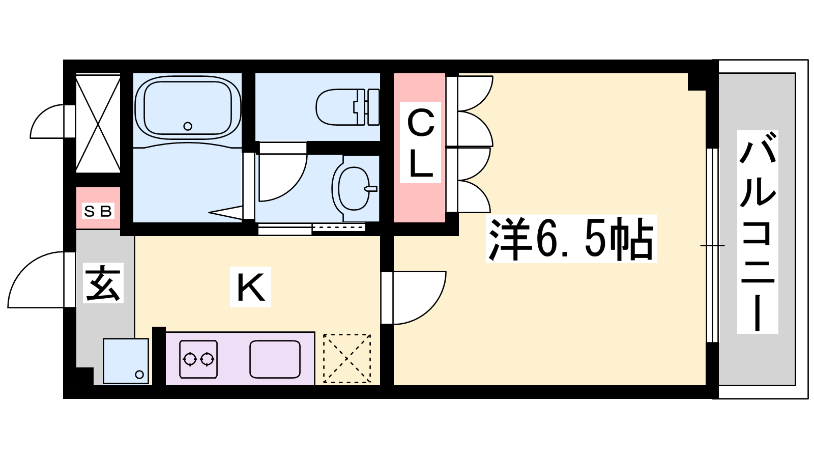 - K2帖、洋室6.9帖