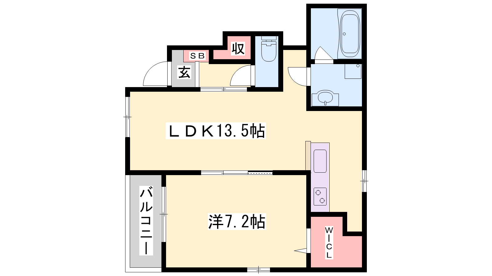- LDK13.5帖、洋室7.2帖
